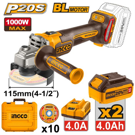Ingco Lithium-Ion Ang/Grinder Kit 115mm