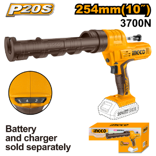 Brite LightingOnly 8 left!Voltage: 20 VThrust: 3 700 NCartridge size: 25.4 cm (10'')Gluing speed: 0.5 - 4.4 mm/sTrigger: variable speedNo load current: 0.35ABattery and char...