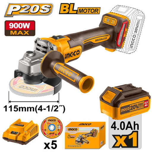Ingco Lithium-Ion Ang/Grinder 900W 20V
