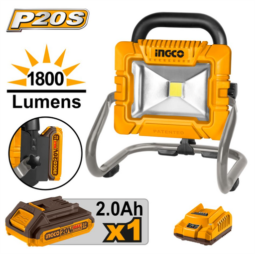 Brite Lightingin stockVoltage: 20VLED power dissipation: 20WLumens:High:1 800Low: 900Battery and charger sold separately.